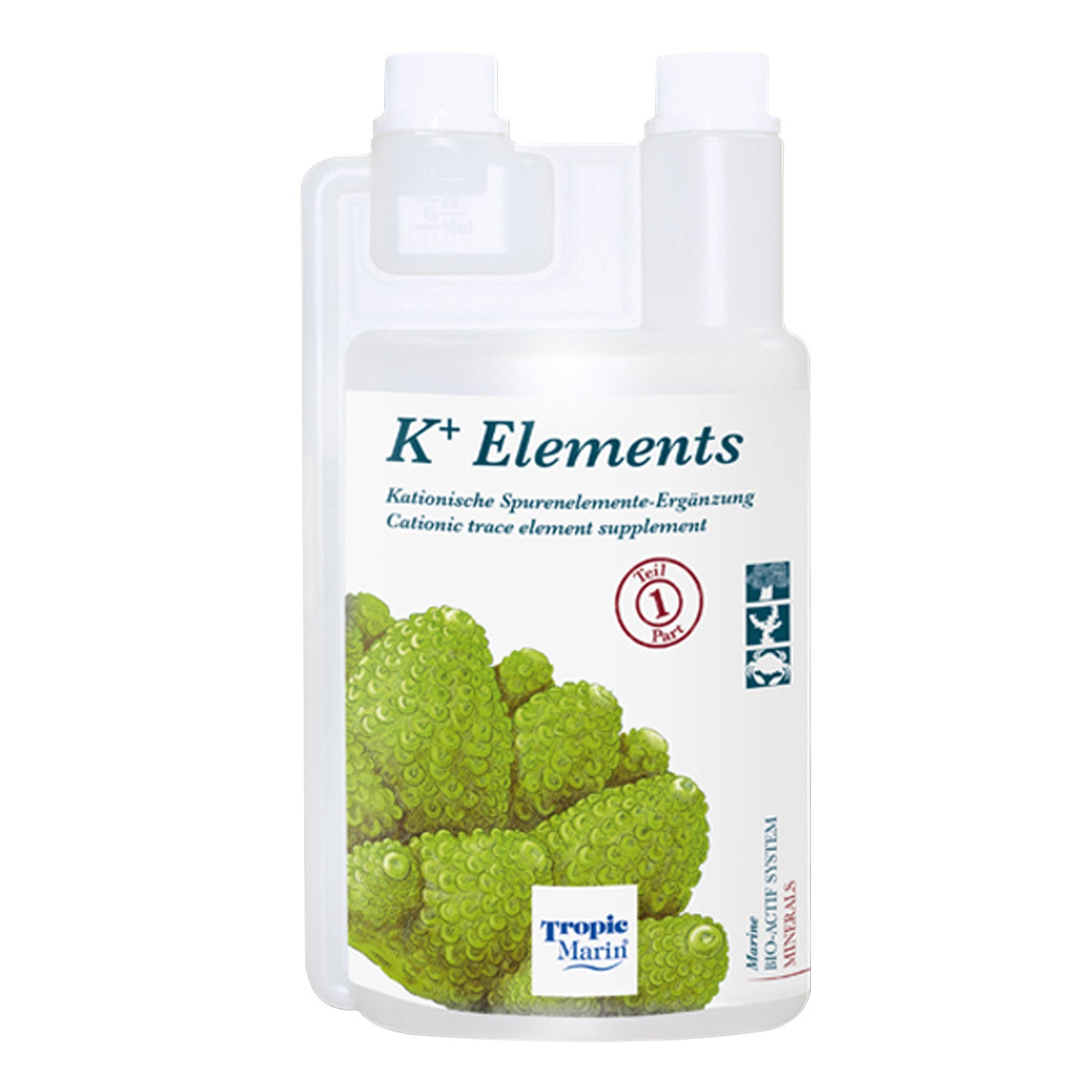 Tropic Marin® K+ Elements contains predominantly cationic trace elements such as strontium, barium, iron, manganese, copper, zinc, nickel, chrome, cobalt and boron in pure mineral form